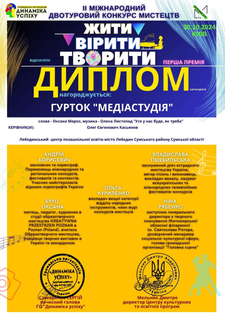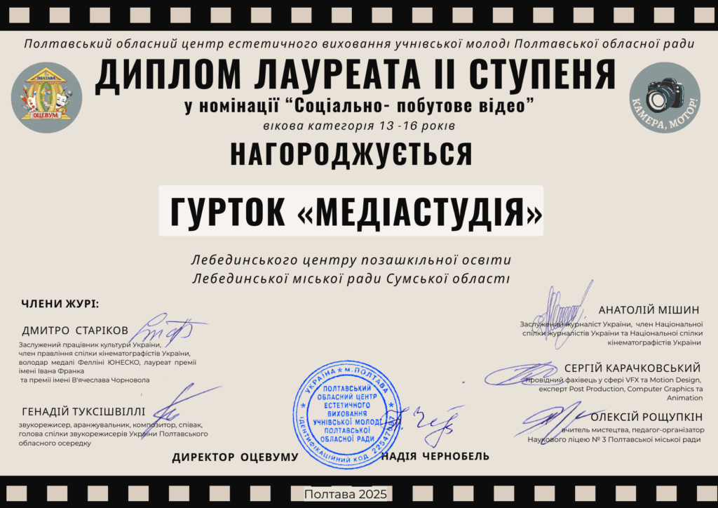 «Медіастудія» – це місце, де ідеї перетворюються на фільми, а звичайний телефон стає інструментом для творчості. Тут ми вчимося знімати фото і відео, монтувати, писати сценарії, працювати зі світлом та звуком і навіть пробувати себе в акторській грі.
